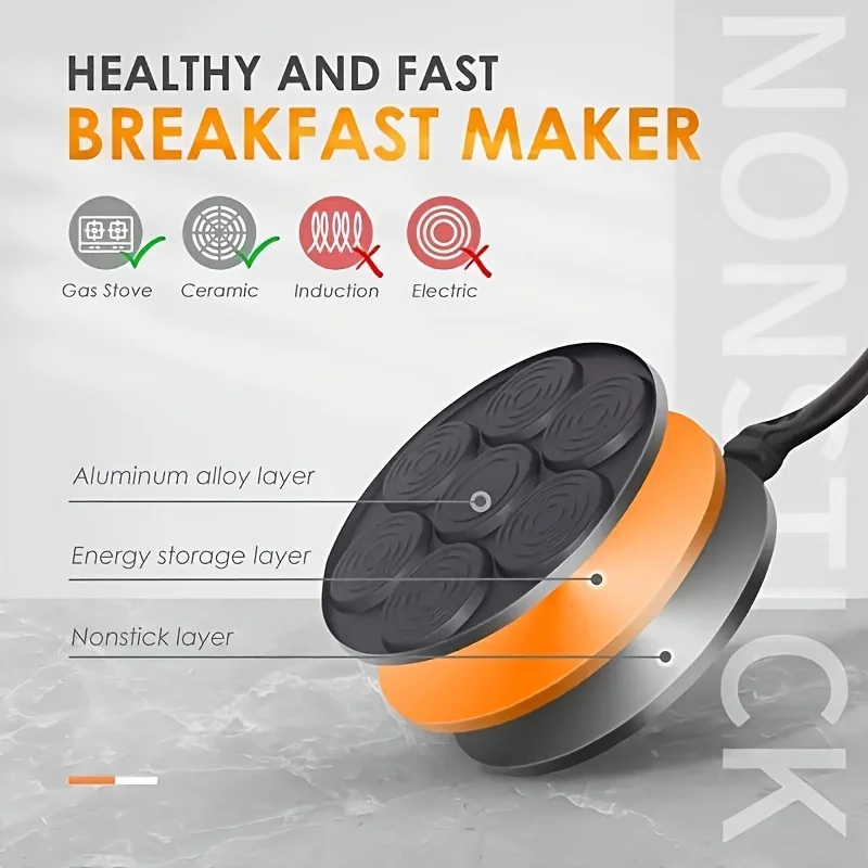 7-Hole Mini Non-Stick Pancake Pan – Aluminum Breakfast Mold for Eggs, Pancakes & Crepes