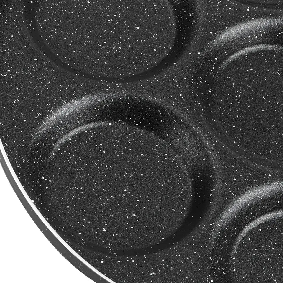 1. High quality aluminum material, evenly heated, saves energy, not easily damaged and has long life.2. 7 round holes frying pan, it allows you to make 7 fried eggs at the same time, convenient to use.3. The inner surface is treated with non‑stick coating to make cleaning easier and more hygienic.4. The frying pan and handle is reinforced with rivets, firm, not easy to fall off and safer to use.5. Anti‑scald and heat‑resistant handle is safe to use, suitable for home, hotel and restaurant kitchen.