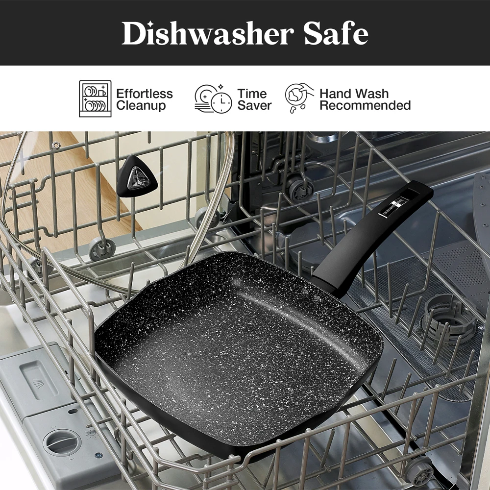KOCH SYSTEME CS 10" Nonstick Grill Pan with Lid Square Skillet for Stovetops
