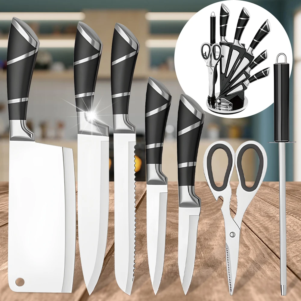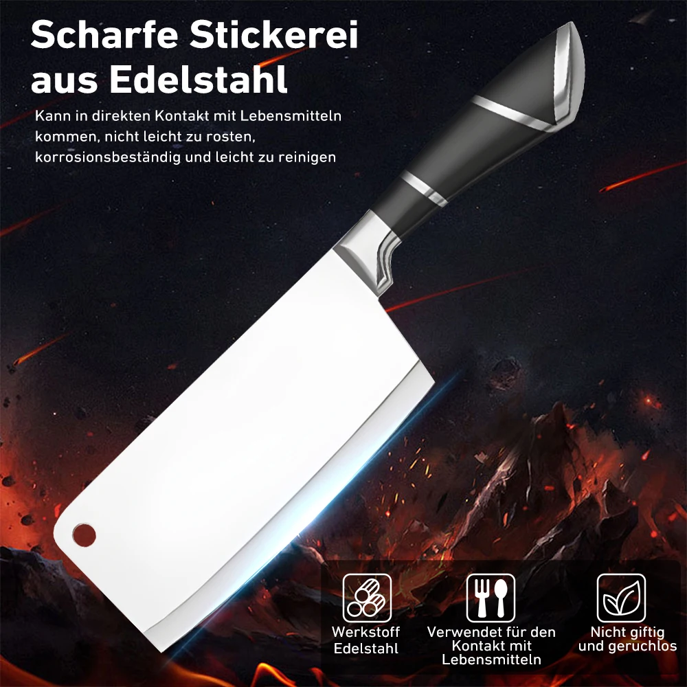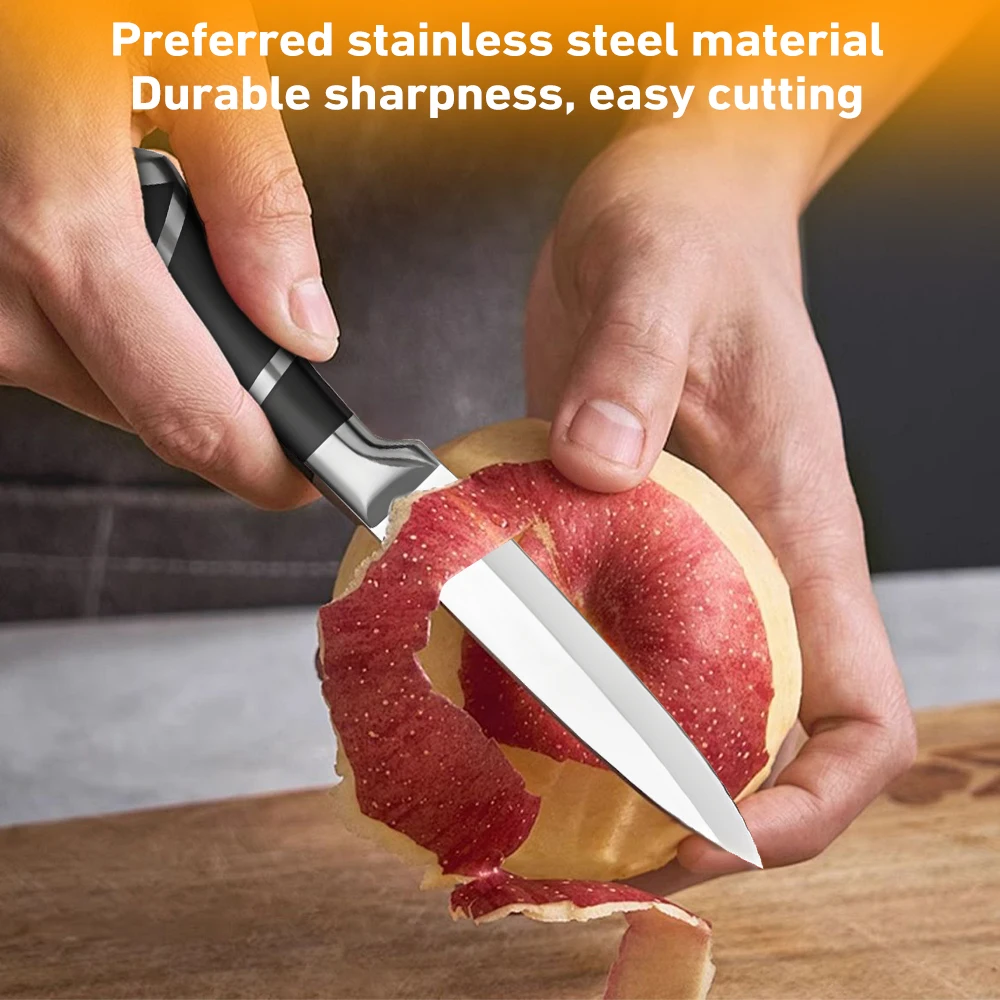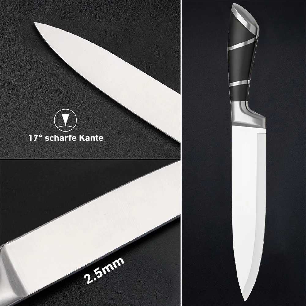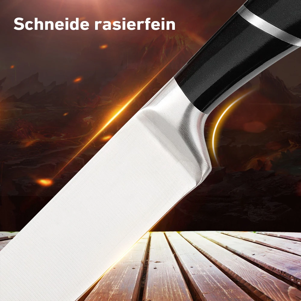 [High Quality]This set of knives is made of high-carbon German stainless steel, each is finely ground by artisans by hand for durability, the V-shaped cutting edge is very sharp, and has a hardness that resists stains and corrosion. This set of sharp stainless steel knives will help you tackle every cutting task in the kitchen with ease.